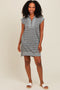 Violet Front Pocket Line Textured Short Sleeve Dress