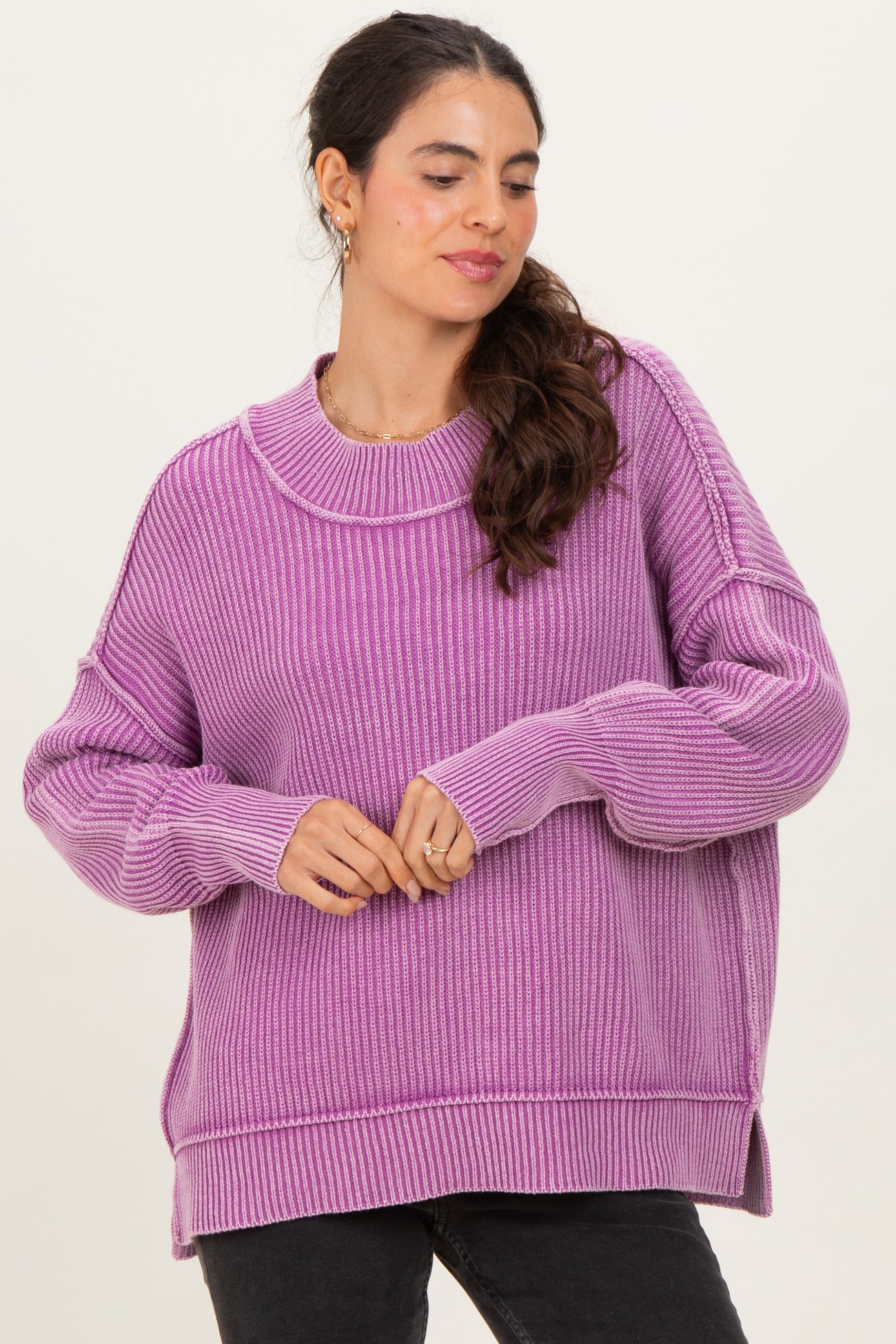 Embrace comfort and style with our Violet Washed Side Slit Oversized Maternity Sweater. Crafted with a soft, ribbed knit fabric, this sweater offers a cozy feel perfect for the changing seasons. Its oversized design provides ample room for your growing bump, while side slits add a flattering touch and ease of movement. The washed violet hue brings a trendy, vintage vibe to your maternity wardrobe. Pair it effortlessly with jeans or leggings for a casual, chic look that keeps you comfy all day long. Ideal for effortless layering and everyday wear.