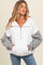 Stay cozy and stylish throughout your pregnancy with our White Colorblock Half Zip Maternity Hoodie. Featuring a chic white body with soft gray sleeves, this hoodie offers a modern colorblock design perfect for casual wear. The half-zip front allows for adjustable comfort and easy nursing access, while the roomy kangaroo pocket provides practicality on the go. Made from a soft, stretchy fabric blend, it gently accommodates your growing bump without sacrificing style. Elastic cuffs and hem ensure a snug, comfortable fit. Pair it with your favorite maternity jeans or leggings for everyday effortless maternity fashion.