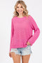 A solid lightweight long sleeve knit top with open diamond design. Top is semi sheer.
