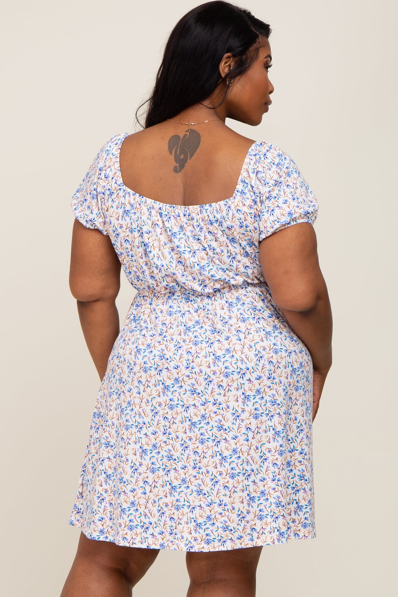 A soft knit, floral print dress featuring a rounded neckline with an elastic band, short puff sleeves, side pockets and an empire waist.