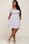 A soft knit, floral print maternity dress featuring a rounded neckline with an elastic band, short puff sleeves, side pockets and an empire waist.