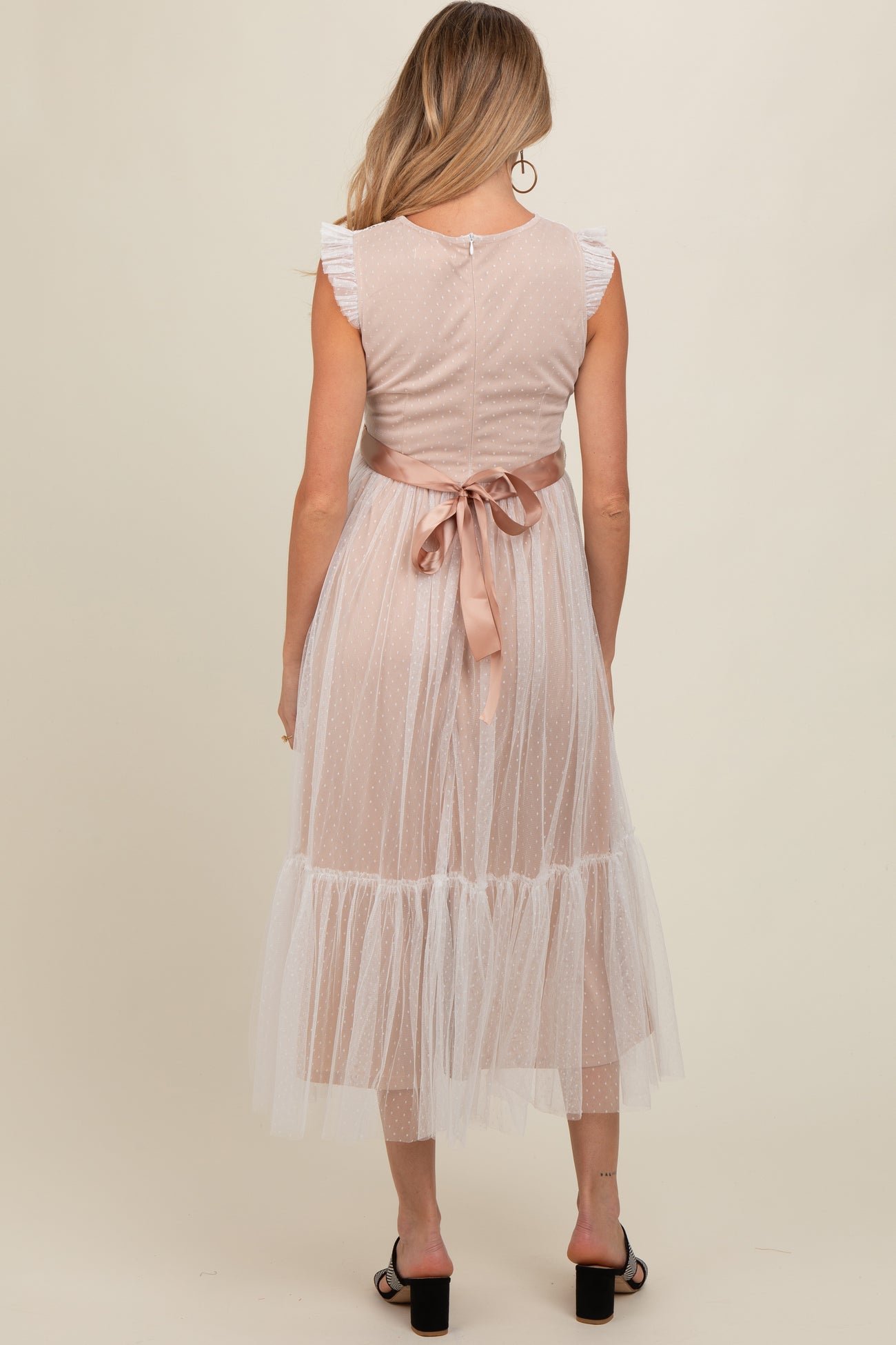 White Lace Contrast Tulle Maternity Maxi Dress