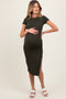 White Striped Ribbed Knit Short Sleeve Maternity Mini Dress