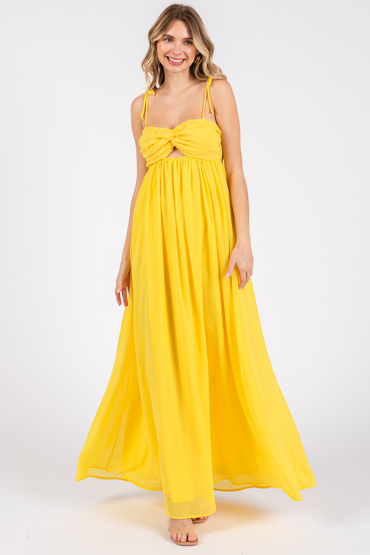Yellow Chiffon Sleeveless Cutout Front Maxi Dress