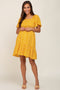 Yellow Floral Smocked Square Neck Ruffle Hem Dress