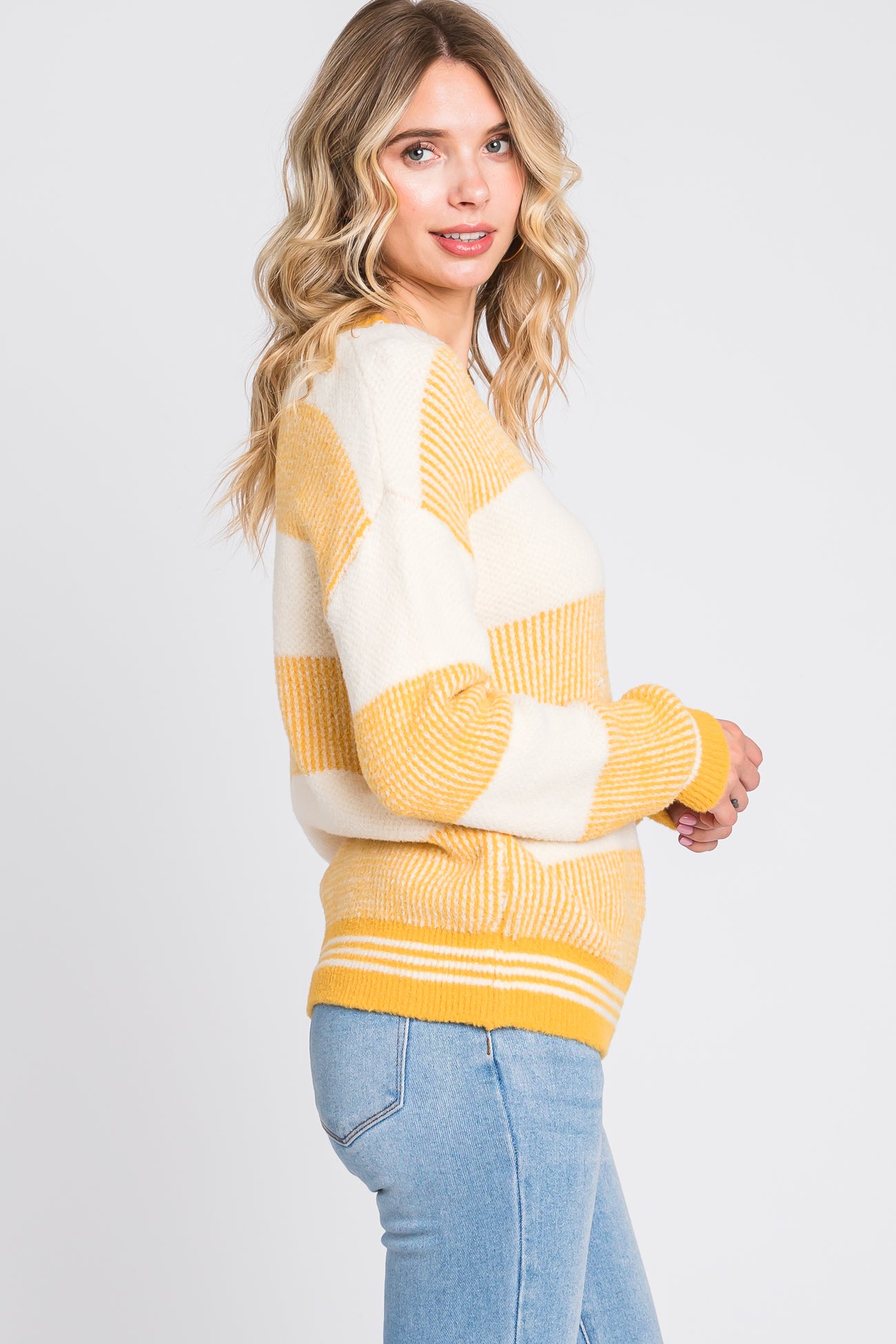 An ultra soft, fuzzy knit sweater featuring a rounded neckline, long sleeves and stripes.