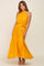 A linen, A-line midi dress featuring an empire neckline, a cutout back with an adjustable tie, a tie at the waist and double lining.