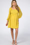 Yellow Textured Dot Smocked Square Neck Chiffon Dress