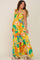 Yellow Tropical Print Smocked Tie Sleeve Maternity Maxi Dress