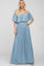Light Blue Chiffon Pleated Off Shoulder Maxi Dress