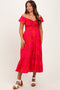 Light Olive Floral Sleeveless Maternity Midi Dress