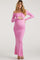 Pink Ribbed Off Shoulder Long Sleeve Maternity Maxi Dress