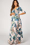 A floral print maternity swimsuit, featuring a deep v-neckline, adjustable ruffle straps, ruched sides, a scoop back with adjustable self tie, a double lining and removable padded cups.