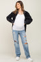 A chenille knit maternity sweater featuring a crew neckline, side slits and long balloon sleeves.