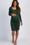 A solid hue maternity dress featuring, a rounded neckline, short sleeves, side pockets and fringe detailing.
