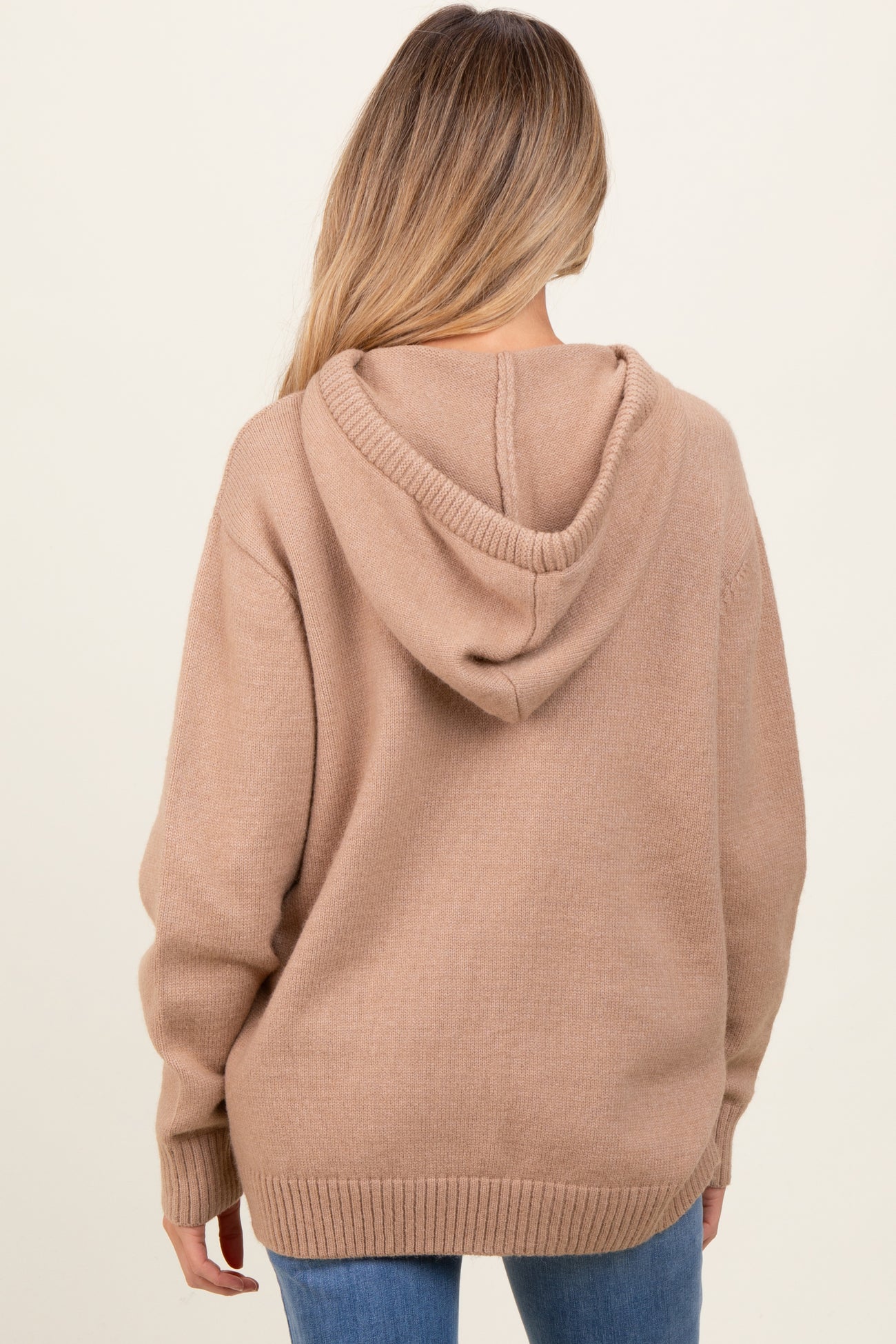 Beige Knit Front Pocket Hooded Maternity Sweater