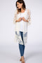 A solid ribbed long sleeve cardigan in an open long length duster style. Features two large front pockets and side slits.