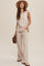 A solid set with a sleeveless tank with raw edge detail and pants with pockets and elastic waistband.