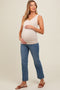 Beige Striped Button Up Long Sleeve Linen Maternity Top