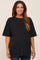 A solid knit maternity top with a rounded neckline and short sleeves.