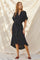 Black Button Down Belted Dolman Sleeve Midi Dress