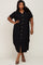 A solid plus maxi dress featuring functioning front buttons, a collar, two front pockets, cuffed short dolman sleeves, and a hi-low rounded hemline.