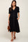 Details A maternity dress featuring a button down front, a tiered body, short puff sleeves, side pockets and a v-neckline. Content + Care
