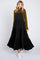 A solid hued dress featuring button sling straps, a front pocket, side pockets and a tiered skirt.