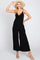 Details A sleeveless jumpsuit that featured a front tie, back smocking, side pockets, and wide pant legs. Content + Care