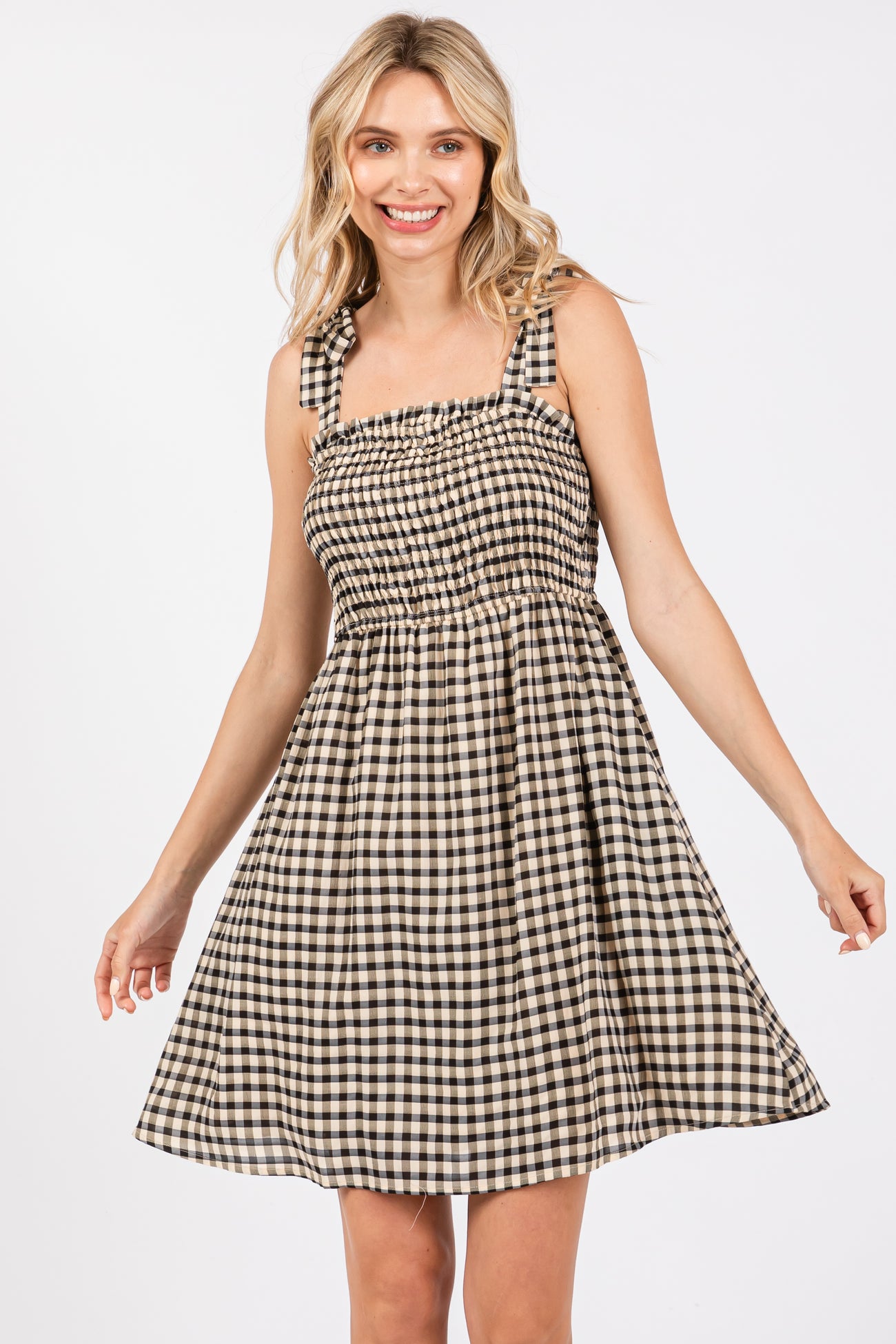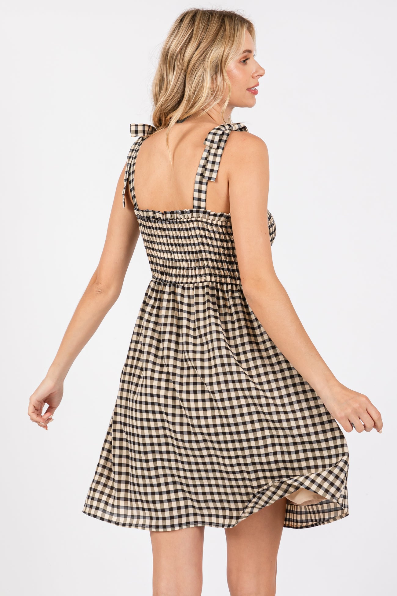 Black Gingham Shoulder Tie Dress