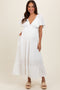 An ultra soft, knit maternity/nursing fitted dress featuring a v-neckline with a wrap front and side tie detailing for easy access. Also features short length sleeves.