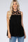 Details A sleeveless blouse featuring an embroidered lace inset and a front keyhole with an adjustable tie. Content + Care