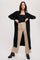 A solid hued long cardigan featuring long sleeves, side pockets and an open front.