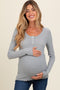 A maternity sweater dress featuring a v-neckline, long sleeves and striped trim.