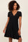 A nursing dress with a v-neckline, pleated skirt, and short sleeves.