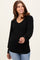 Black Ribbed Knit V-Neck Button Cuff Top