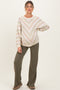 A ribbed maxi dress featuring long sleeves, a side slit and a rounded neckline.