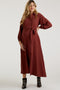 A solid ribbed basic maternity fitted long sleeve maxi dress with side slit detail.