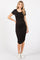 Details A solid fitted dress featuring short sleeves, a rounded neckline and side ruching. Content + Care