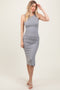 Black Ruched Gingham Shoulder Tie Maxi Dress