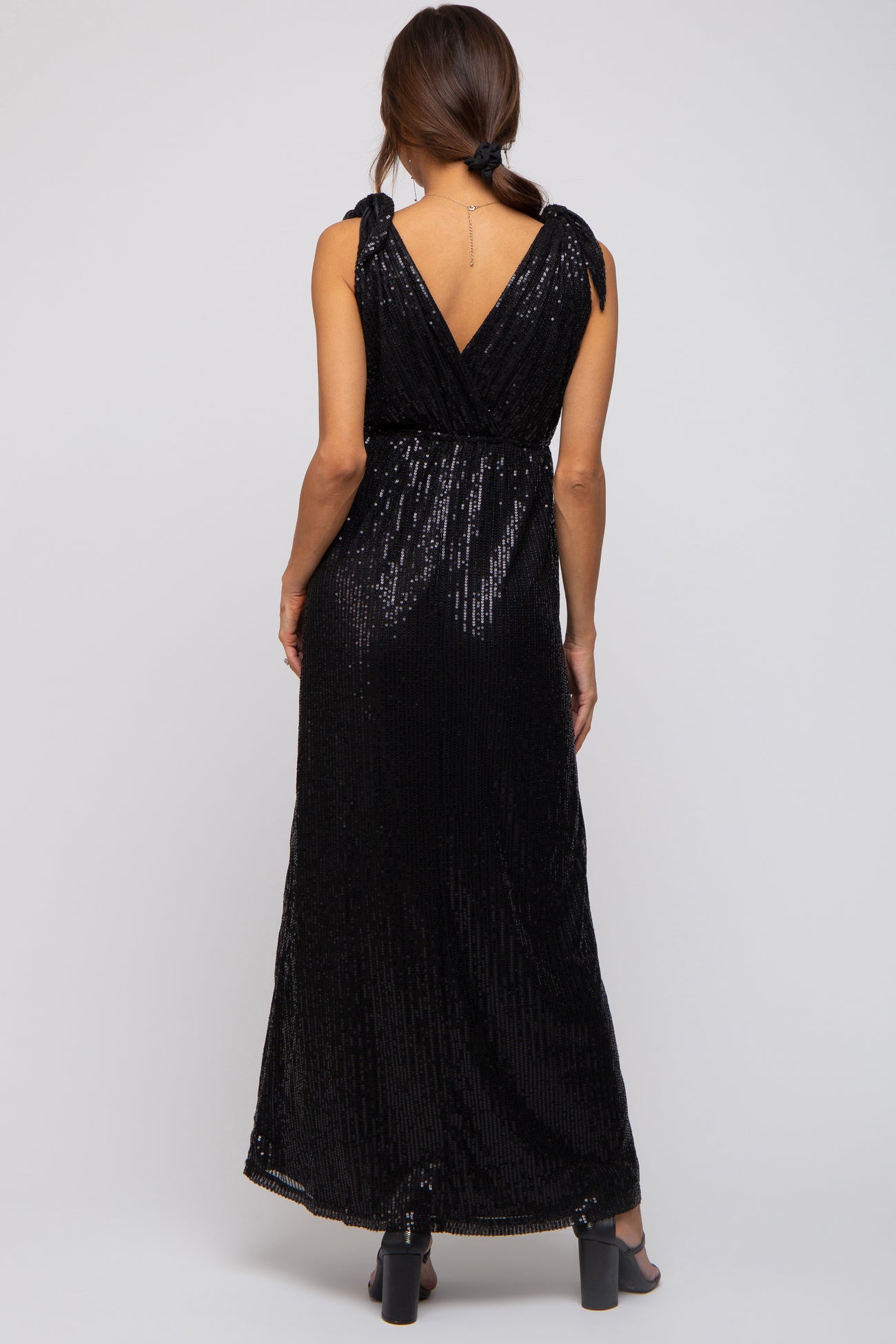 Black Sequin Sleeveless Wrap V-Neck Maternity Gown