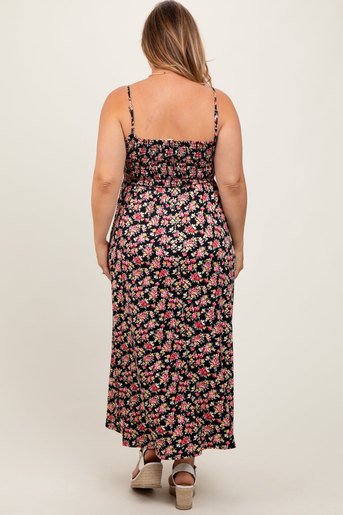 Black Square Neck Smocked Maternity Plus Midi Dress