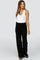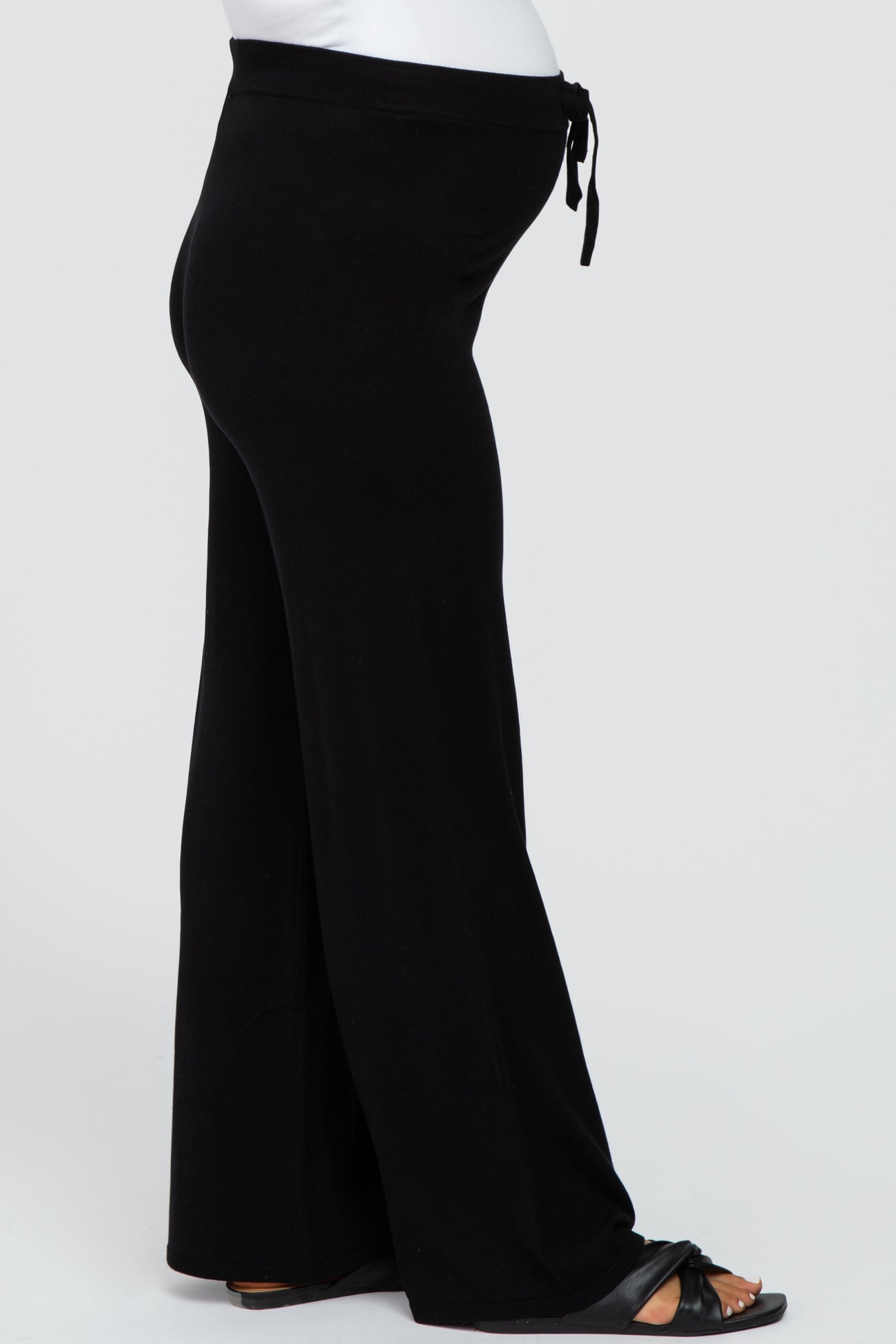 An ultra soft knit pair of maternity pants featuring wide pant legs, an elastic waistband and an adjustable drawstring.