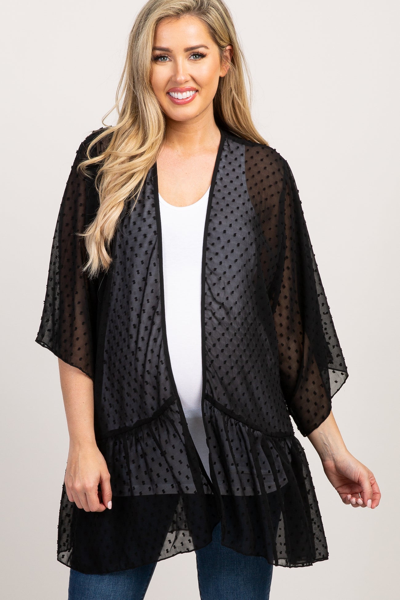 Black Swiss Dot 3/4 Sleeve Chiffon Maternity Cover Up