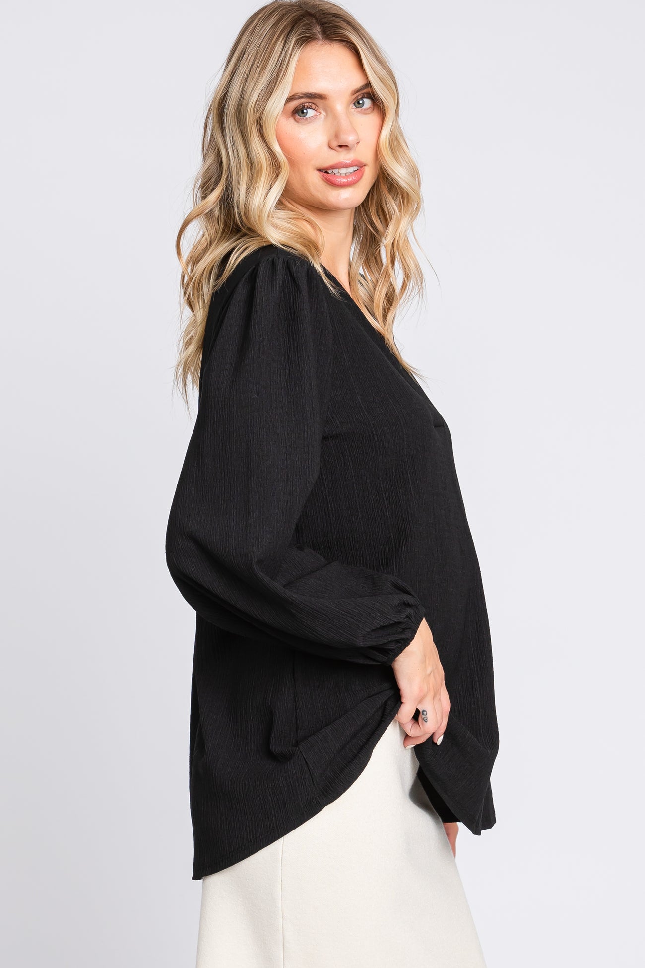Details A solid textured blouse featuring long sleeves and a v-neckline. Content + Care