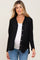 A solid maternity long sleeve top with a button down front closure and drop shoulder. Can be worn as a top or cardigan.