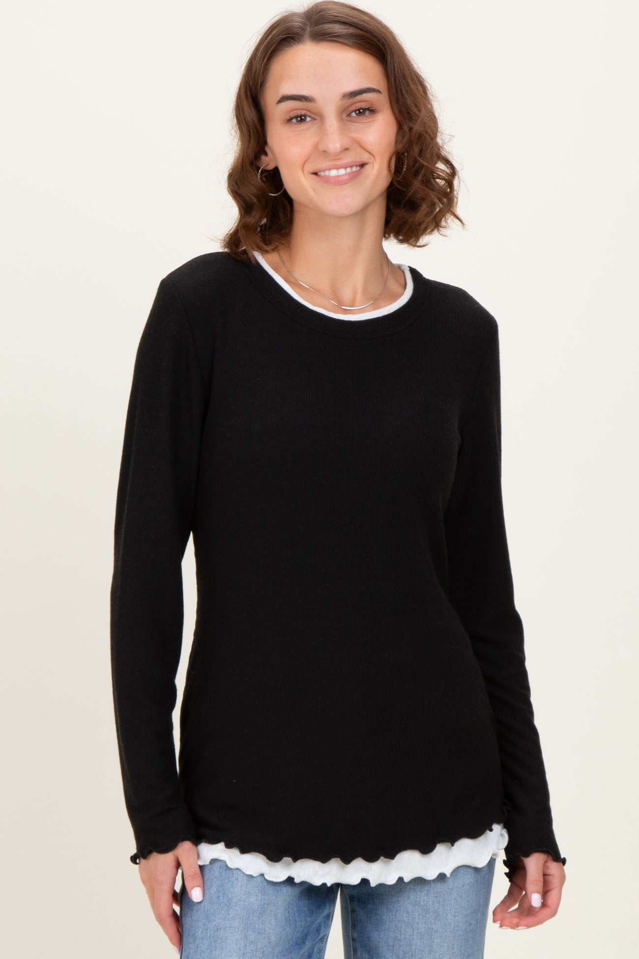Black/White Ribbed Long Sleeve Maternity Twofer Top