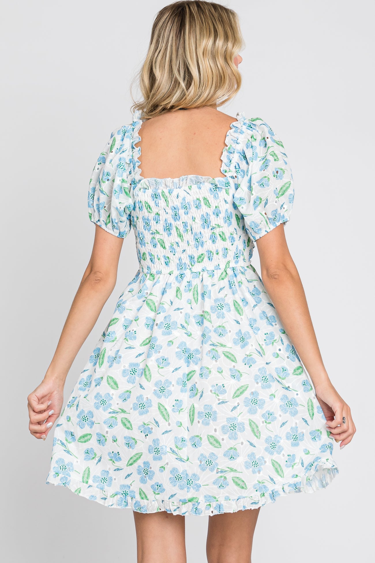 Blue Embroidered Eyelet Lace Dress