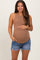Blue Fringe Hem Side Slit Maternity Denim Shorts